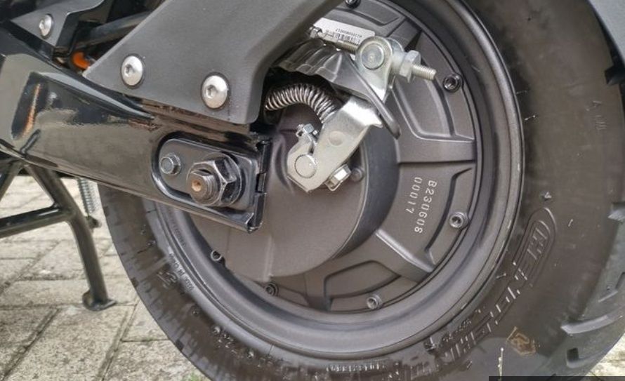 - Perlu diperhatikan bahwa motor listrik terletak di bagian roda belakang.
